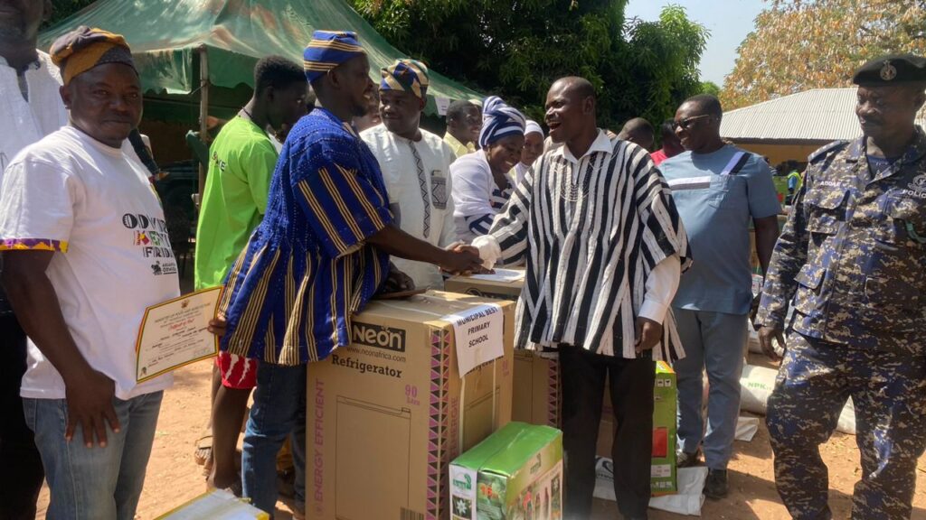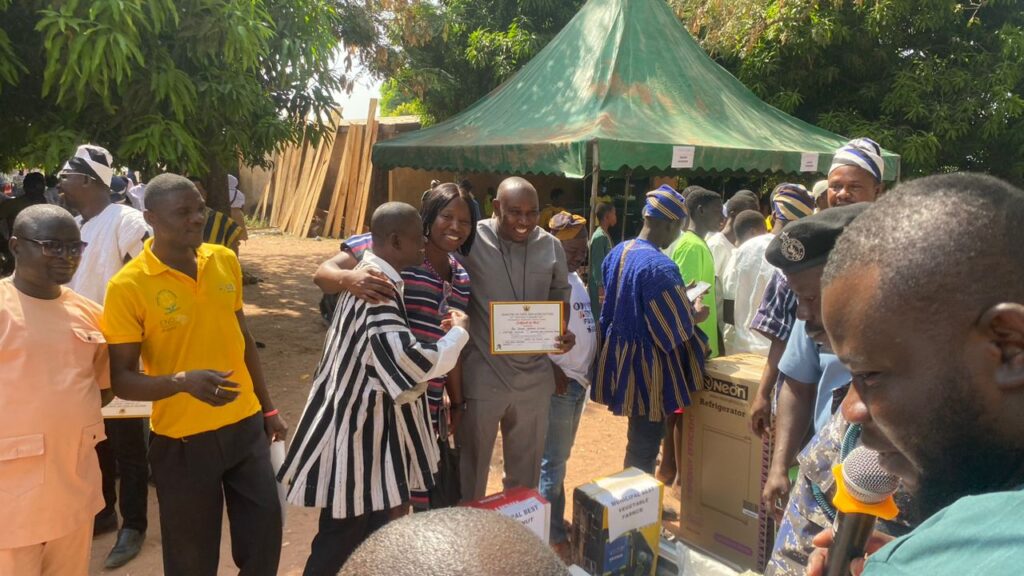 A wide range of award categories highlighted the diversity of West Gonja’s agriculture sector. These included Best Livestock Farmer, Best Model OFSP Farmer, Best Sustainable Farmer, Best Vegetable Farmer, Best Groundnut Farmer, Best Maize Farmer, Best Soya Beans Farmer, Best Cashew Farmer, Best Physically Challenged Farmer, as well as awards for outstanding educational institutions such as Larabanga Islamic SHS, St. Peter RC JHS, and Falahiyat Primary School. Winners across these categories received zinc sheets, fertilizers, knapsack sprayers, Wellington boots, refrigerators, cutlasses, and other essential farming items.