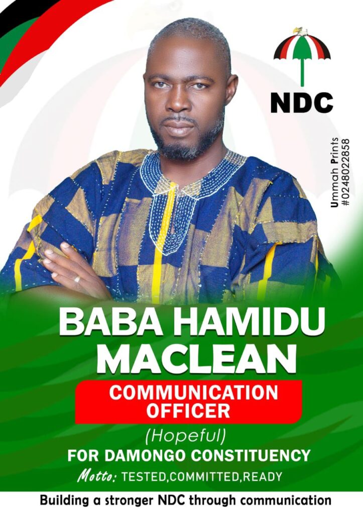 Baba Hamidu Maclean has officially declared his intention to contest for the position of National Democratic Congress (NDC) Constituency Communication Officer for the Damongo Constituency in the party’s 2026 internal elections.