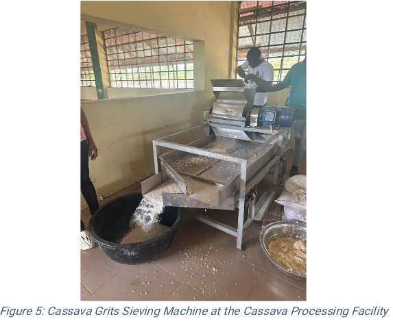 storage facilities, and community-based processing centers. Two modern facilities in Murugu and Bawena now produce premium cassava flour and grits that meet market and organic certification standards. These centers drive local economic growth by adding value, minimizing post-harvest losses, and creating employment opportunities.