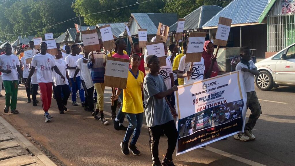Her statement came during a spirited health walk in Damongo, organized on Saturday, 28th June, 2025 to mark this year’s International Day Against Drug Abuse and Illicit Trafficking, celebrated globally every June 26th.