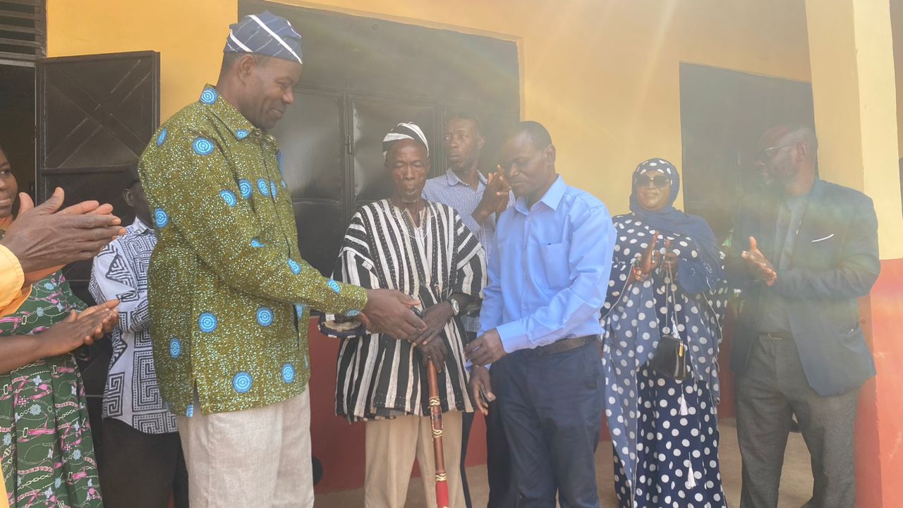 The West Gonja Municipal Chief Executive (MCE), Hon. Yakubu Yussif Castro, has officially handed over a newly completed 3-unit classroom block with auxiliary facilities to Kurabaso Junior High School (JHS) Block “B”.